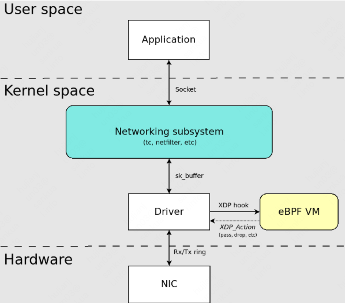 - 加载eBPF字节码到内核hook点,比如socket filters, tc classifiers, tc actions, kprobes